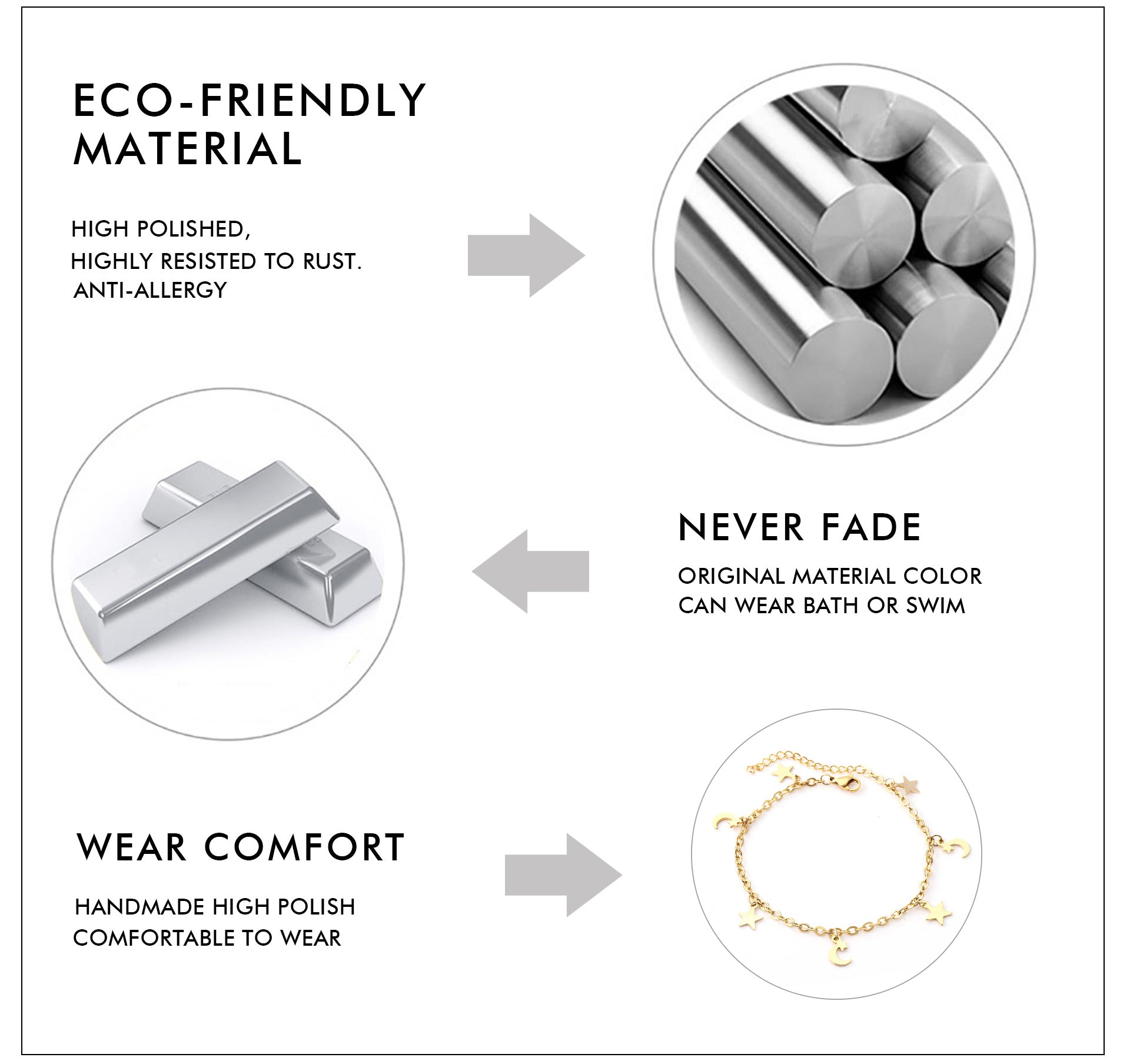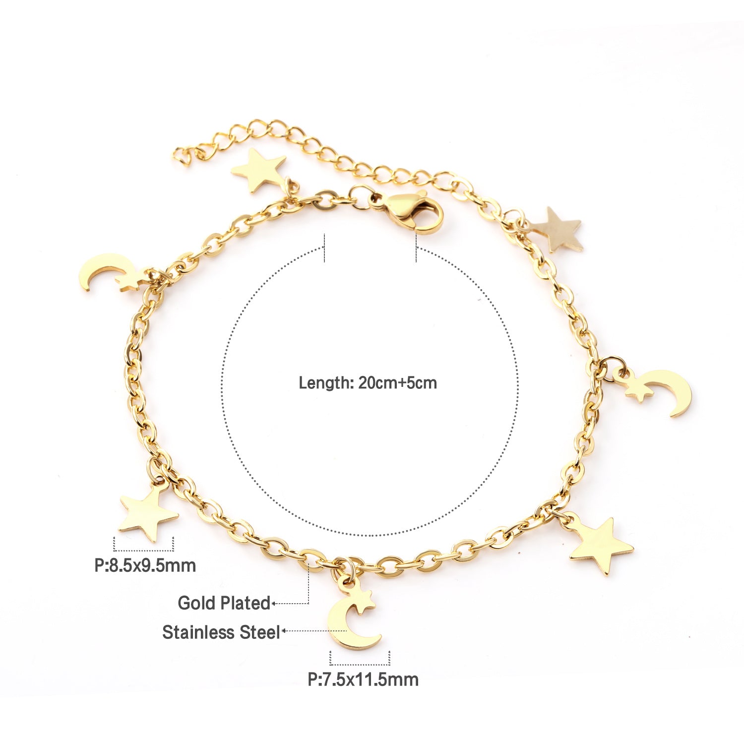 Elevate your vacation style with this Celestial Anklet crafted from durable stainless steel with an 18k gold PVD finish. Designed for both elegance and lasting wear, it adds a subtle shimmer that complements any beach outfit while resisting tarnish and corrosion. Perfect for travellers seeking sophisticated, low-maintenance jewellery that captures the magic of seaside escapes.