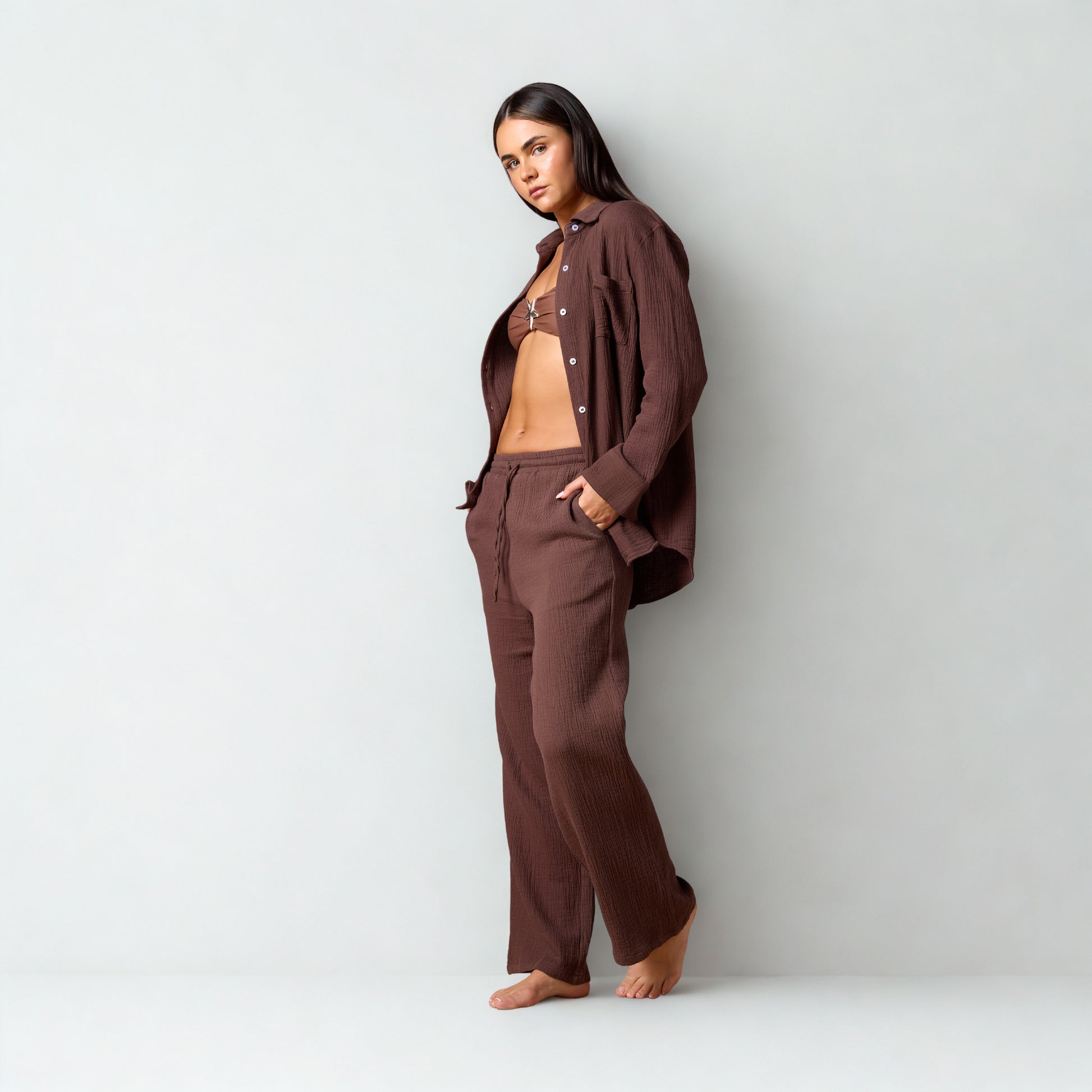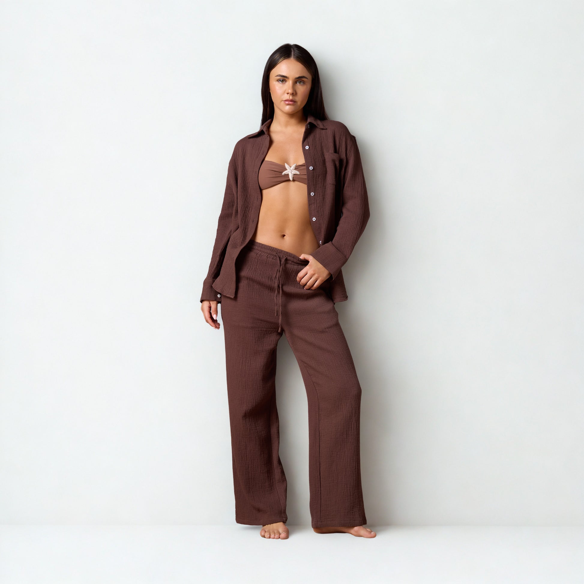 Crafted from 100% cotton crinkle fabric, these Cotton Sun Creased Trousers offer a refined yet relaxed silhouette perfect for beachside elegance. Designed to coordinate effortlessly with the matching shirt, they create a sophisticated co-ord set ideal for warm-weather occasions. The breathable material ensures comfort while the subtle texture adds depth to your ensemble.