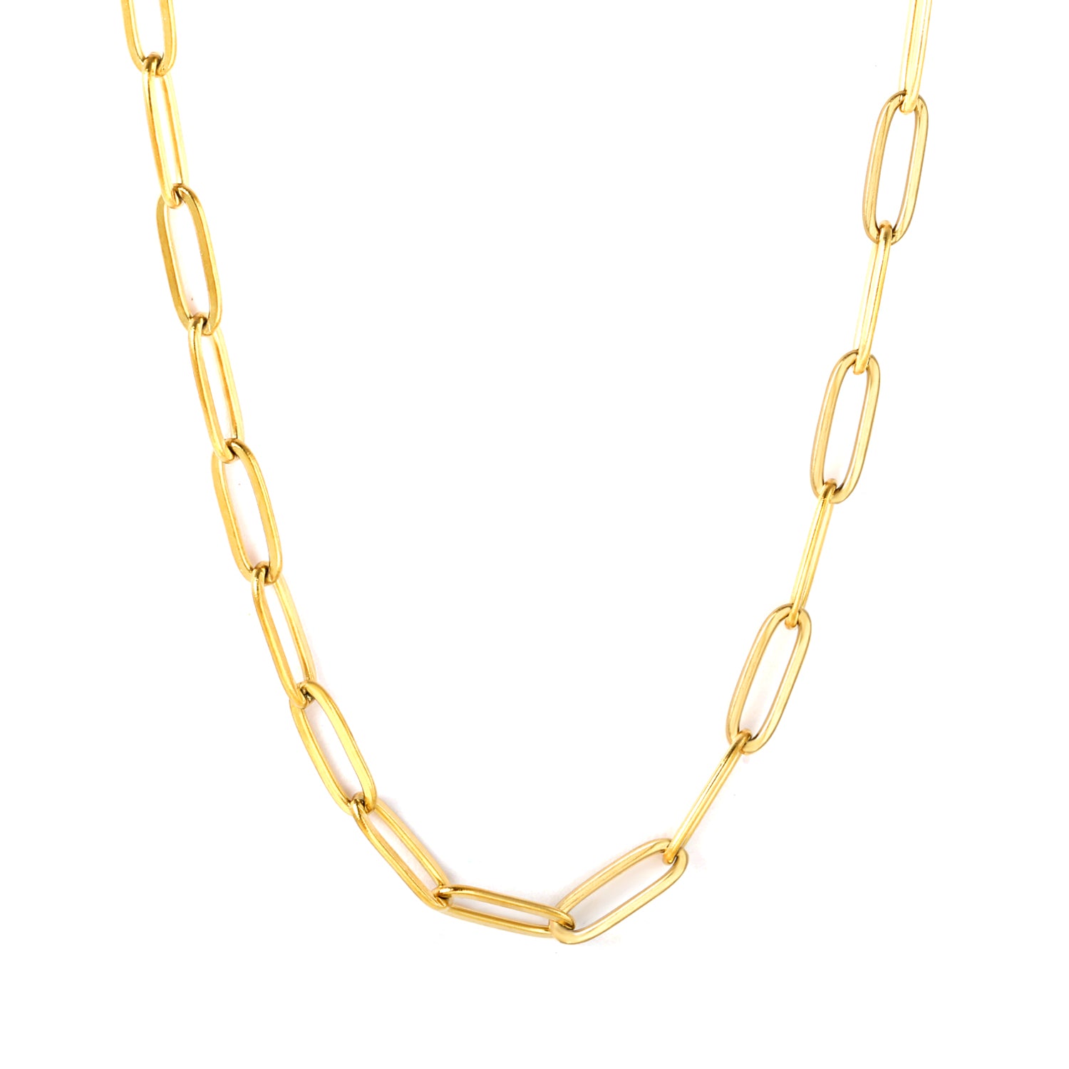 Elevate your look with the Emily Chain Necklace, crafted from durable stainless steel and finished with 18k gold PVD coating. This tarnish-proof piece combines timeless elegance with modern trendiness, ensuring lasting shine and style for any occasion. Perfect for layering or wearing alone, it adds a sophisticated touch that stays vibrant day after day.